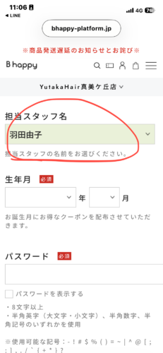 登録の際のスタッフ名は羽田由子を選択ください。お得なクーポンや新商品のお知らせをいち早くお届けいたします。